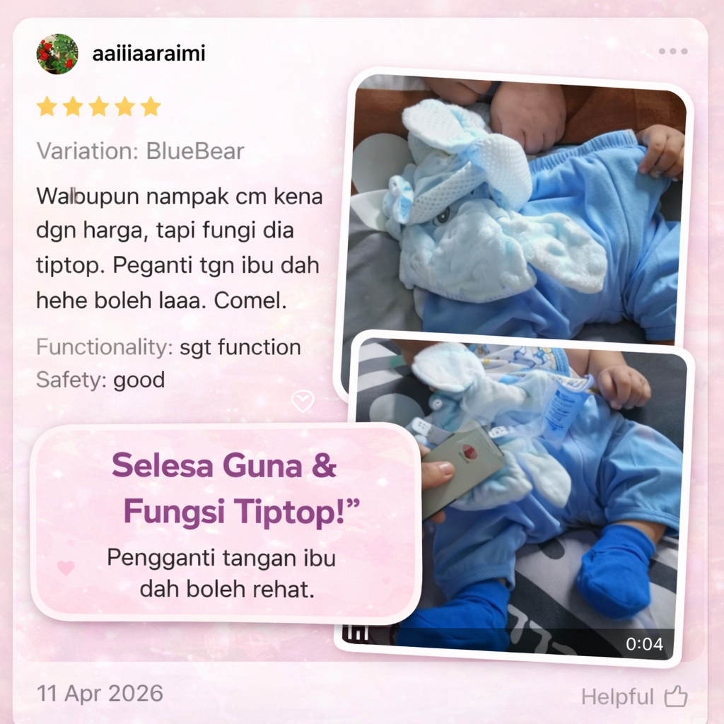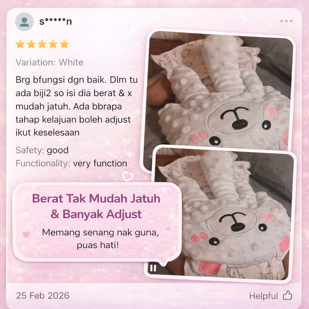 “Baby saya jenis susah tidur kalau tak tepuk. Bila guna ni, dia nampak lebih tenang. Bukan terus lena terus, tapi memang kurang nangis & cepat tidur balik.” - Nurul Khairani​